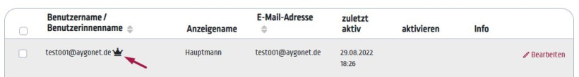 Es gibt nur einen/eine Hauptadministrator*in pro Beratungsstelle. Dieser/diese ist erkennbar an der Krone in der Admin-Liste.