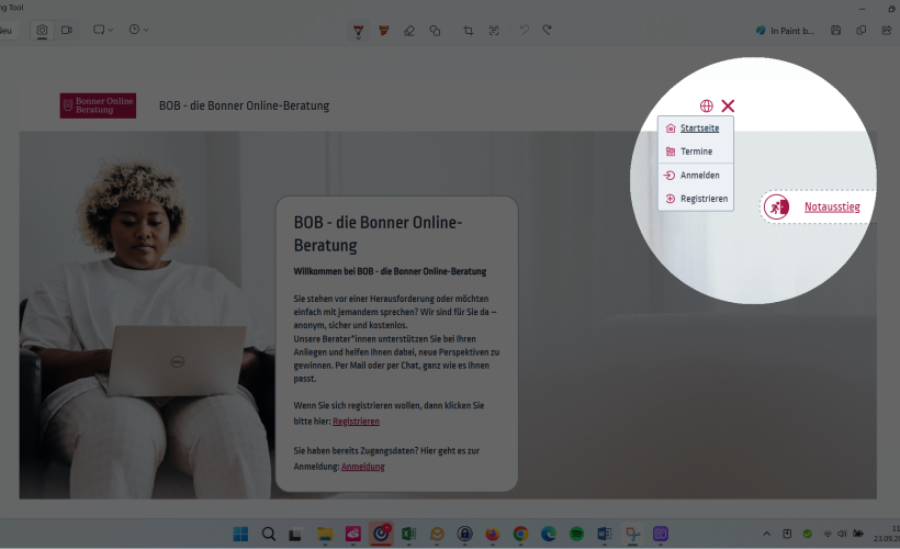 | CLWir haben die Menüführung auf den Eingangsseiten der Beratungsstellen überarbeitet und den Notausstieg verbessert.