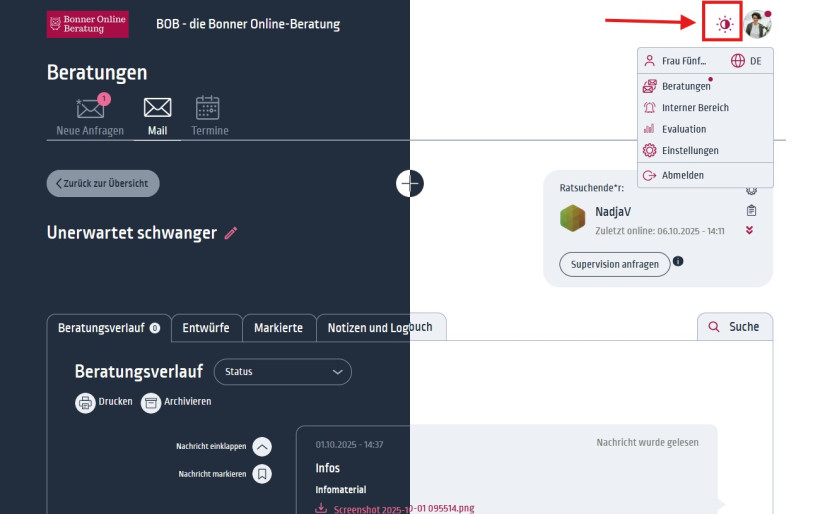 Sie können jederzeit selbst zwischen hellem und dunklem Design wechseln.